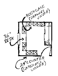 This is about as far as we can go without involving some power tools and the skills necessary to use them. Anything is possible with a few hand tools and sufficient patience, but the following is a soup to nuts approach to doing an entire room of casework and work surfaces -sort of a hobbyist or collectors dream room.