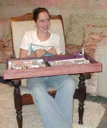 Permit me to introduce my niece Loren and her friend Leah. They are into beading -fiddling about with these pretty little sparkly things. Things that are particularly inclined to get lost. But it turns out that my wide drawers make just a perfect, portable, and self contained work bench! And when it comes time to clean up -they just stick the whole mess back in its case.