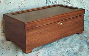 This was an interesting job. Robert in Wisconsin wanted a custom case to hold his wife's jewelry, his watch collection, and their mutual Green Bay Packers pin collection and he wanted it to fit into a wall safe. Came out nicely, I think, and Robert's wife loves it.
